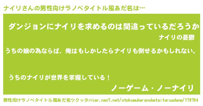 | ポケモン風あだ名 | 『ナイリダネ』『ヒナイリ』 |