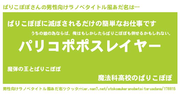 | 肩書あだ名 | 『ぱりこぽぽ少将』『ぱりこぽぽ総統』 |