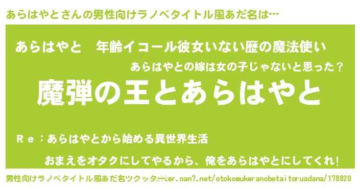 | 意味不明あだ名 | 『住所不定無職あらはやと(7歳)』 |