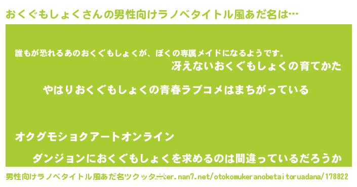 | 女子向けラノベタイトル風あだ名 | 『おくぐもしょくの雑貨屋さん』 |