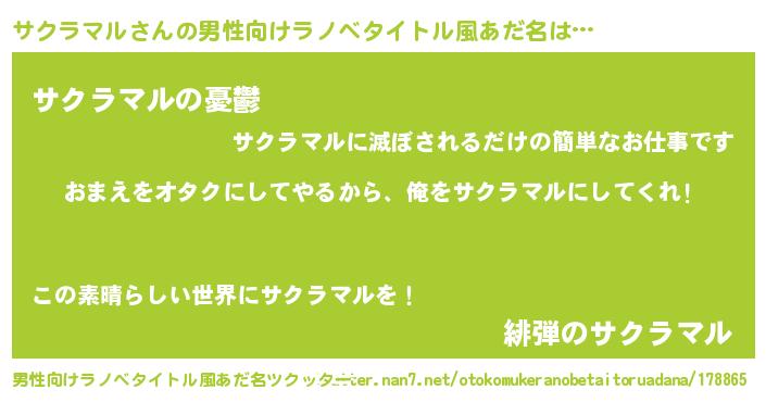| 女子向けラノベタイトル風あだ名 | 『サクラマル夫妻のなれそめ』 |