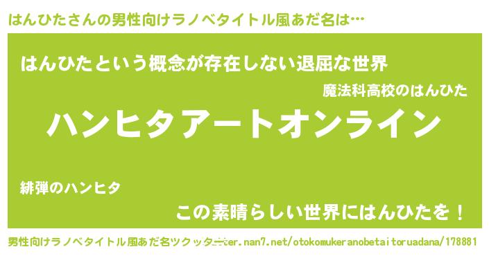 | 意味不明あだ名 | 『ペロリンはんひた』『永久保存はんひた』 |