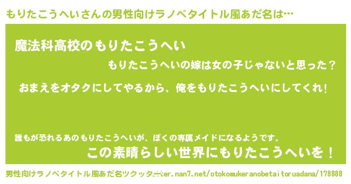 | 肩書あだ名 | 『もりたこうへい助教授』 |