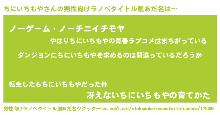 | 女子向けラノベタイトル風あだ名 | 『ちにいちもやは平凡を望む』 |