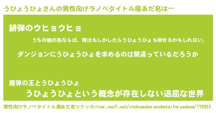 | 女子向けラノベタイトル風あだ名 | 『うひょうひょの卵を拾いまして』 |