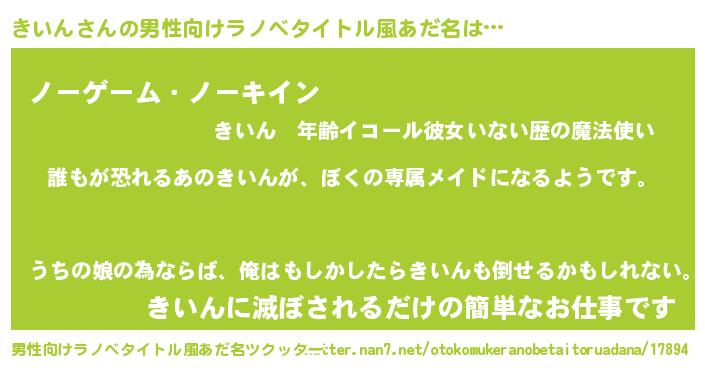 | ヘコむあだ名 | 『きいん(小並感)』『なまこ酢』 |