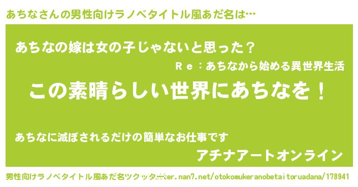 あちなさんの男性向けラノベタイトル風あだ名をツクッター!