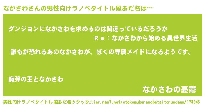 | 女子向けラノベタイトル風あだ名 | 『異世界でカフェなかさわを開店しました。』 |