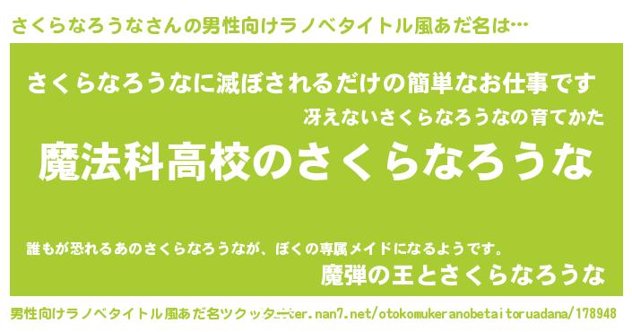| 伝説のあだ名 | 『聞きしに勝る暗殺者さくらなろうな』 |