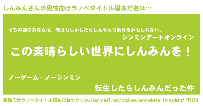 | 意味不明あだ名 | 『住所不定無職しんみん(2歳)』 |