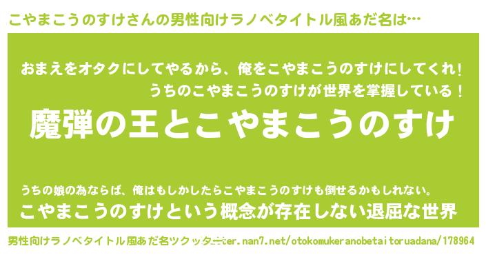 | 意味不明あだ名 | 『住所不定無職こやまこうのすけ(68歳)』 |