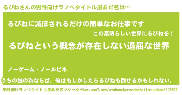 | 胡散臭い通販商品みたいなあだ名 | 『絶対に幸福をもたらす招き猫…その名も「るぴね」』 |