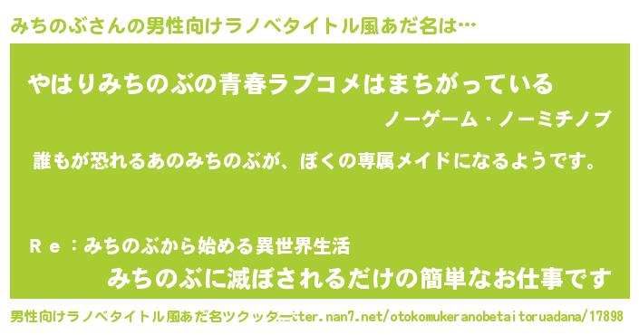| 意味不明あだ名 | 『永久保存みちのぶ』『自称みちのぶ』 |