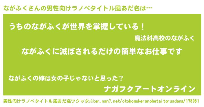 | 胡散臭い通販商品みたいなあだ名 | 『モテモテ間違いなし霊験あらたかなお札…その名も「ながふく」』 |
