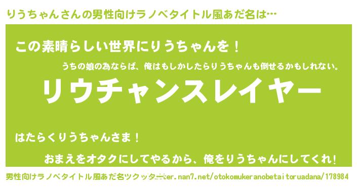 りうちゃんさんの男性向けラノベタイトル風あだ名をツクッター!