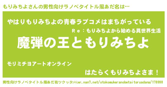 | 意味不明あだ名 | 『住所不定無職もりみちよ(9歳)』 |