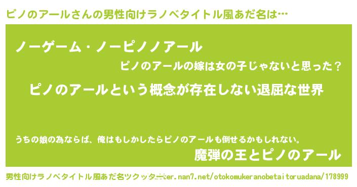 | 女子向けラノベタイトル風あだ名 | 『異世界で失敗しない100のピノのアール』 |