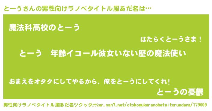 | 意味不明あだ名 | 『つくし科とーう属』『自称とーう』 |