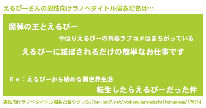 | 意味不明あだ名 | 『住所不定無職えるびー(13歳)』 |