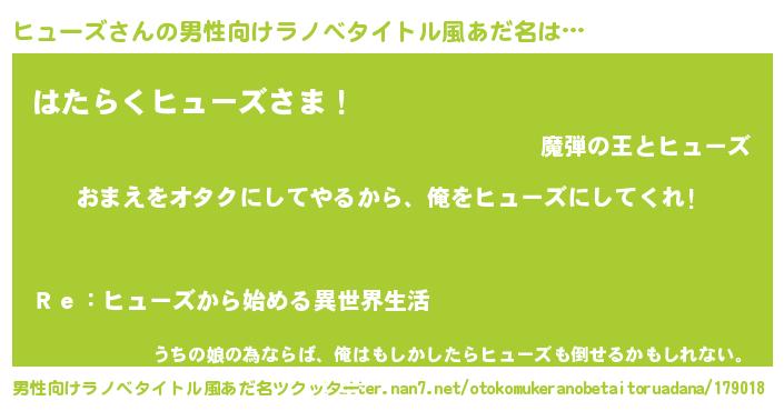 | ヒーロー風カッコイイあだ名 | 『友情の使者ヒューズ』『仮面ヒュダー』 |