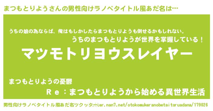 | 料理風あだ名 | 『まつもとりようごはん』 |
