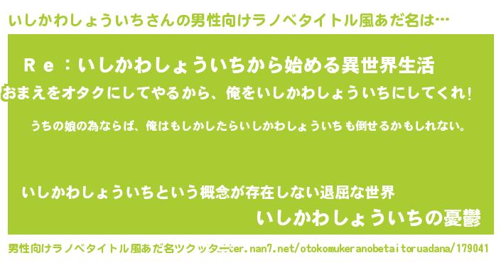 | 女子向けラノベタイトル風あだ名 | 『いしかわしょういち伯爵の花嫁』 |