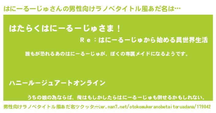 | 胡散臭い通販商品みたいなあだ名 | 『前代未聞の水素水…その名も「はにーるーじゅ」』 |