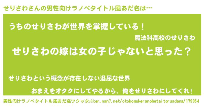 | 女子向けラノベタイトル風あだ名 | 『せりさわ様がみてる』 |