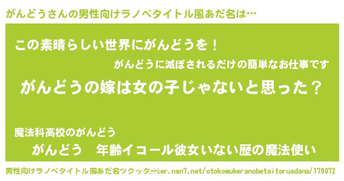 | 女子向けラノベタイトル風あだ名 | 『がんどう様がみてる』 |