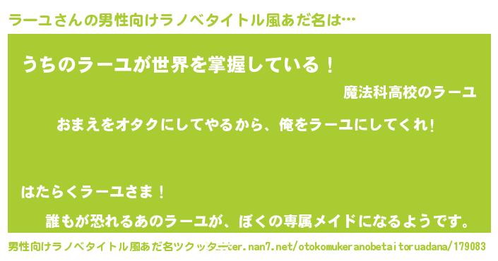 | ヒーロー風カッコイイあだ名 | 『正義の使者ラーユ』『ネオラーユ』 |