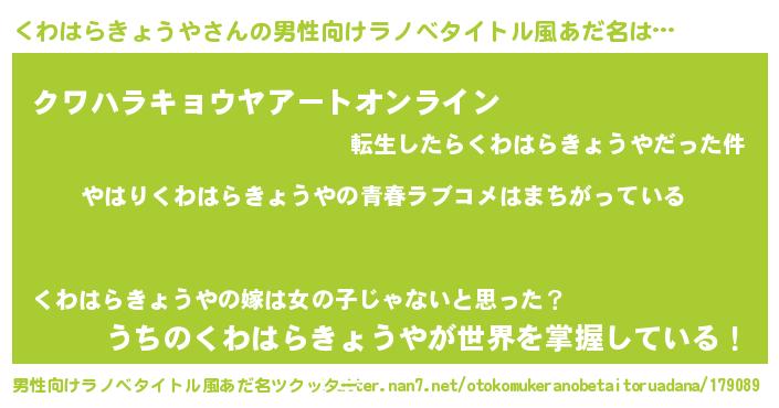 | 意味不明あだ名 | 『くわはらきょうやフォーエバー』 |