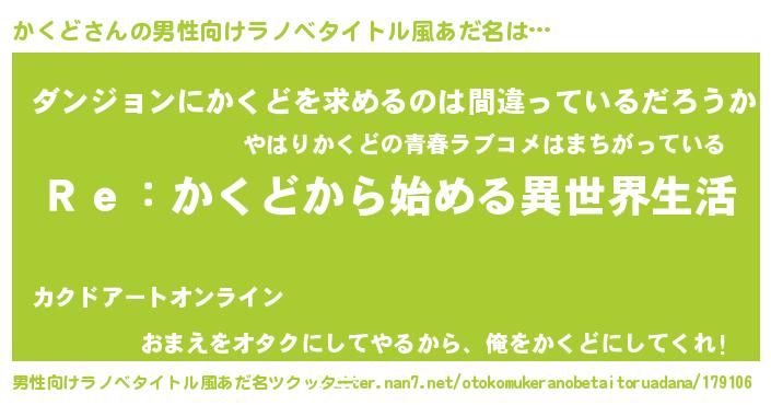 | 女子向けラノベタイトル風あだ名 | 『かくどストレイドッグス』 |