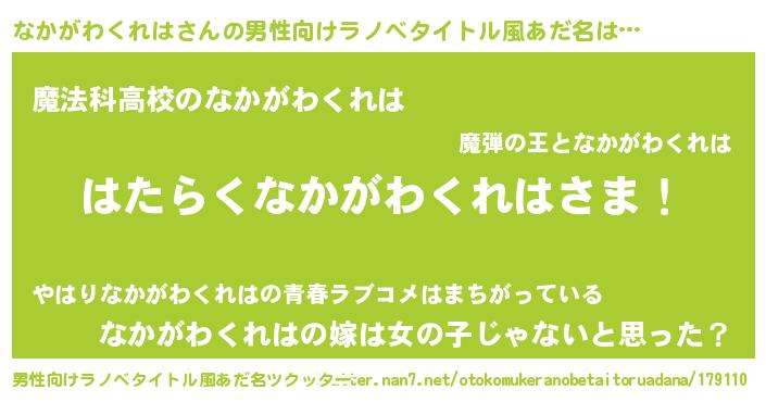 | 意味不明あだ名 | 『自称なかがわくれは』 |