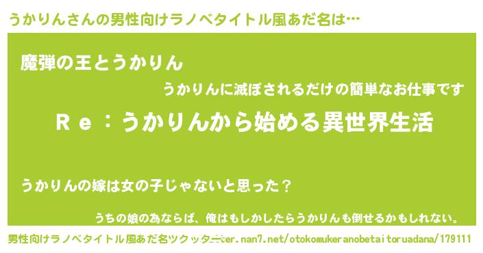| 女子向けラノベタイトル風あだ名 | 『闇のうかりん』『うかりんの婚約者』 |
