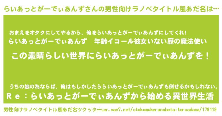 | 意味不明あだ名 | 『住所不定無職らいあっとがーでぃあんず(71歳)』 |