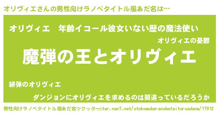 | 意味不明あだ名 | 『住所不定無職オリヴィエ(50歳)』 |