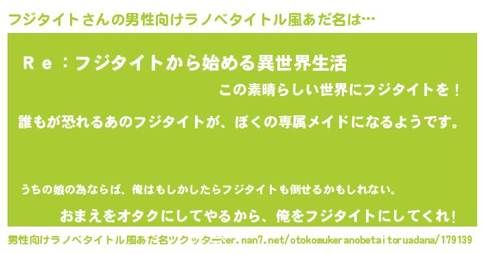 | 胡散臭い通販商品みたいなあだ名 | 『前代未聞の健康食品…その名も「フジタイト」』 |
