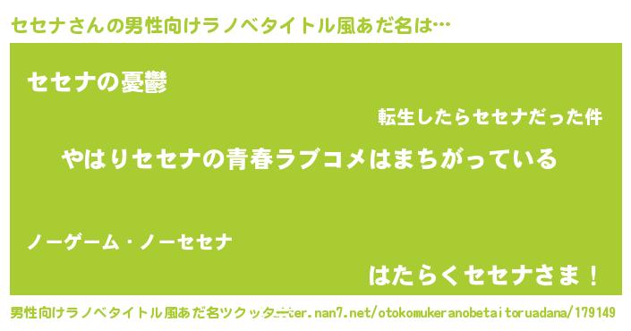 | ヘコむあだ名 | 『豆乳』『セセにー』『セセナ(笑)』 |