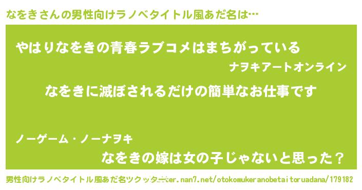 | ファンタジー風あだ名 | 『エターナルナヲキー』『ナヲフェル』 |