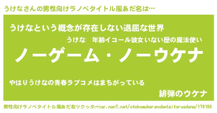 | ヒーロー風カッコイイあだ名 | 『愛の使者うけな』『ネオウケナ』 |