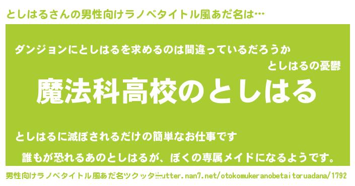 | 女子向けラノベタイトル風あだ名 | 『としはるなんてお断りですっ。』 |
