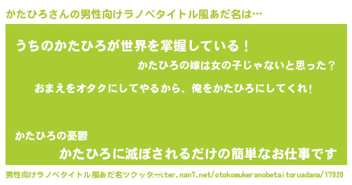 | 女子向けラノベタイトル風あだ名 | 『かたひろ夫妻のなれそめ』 |