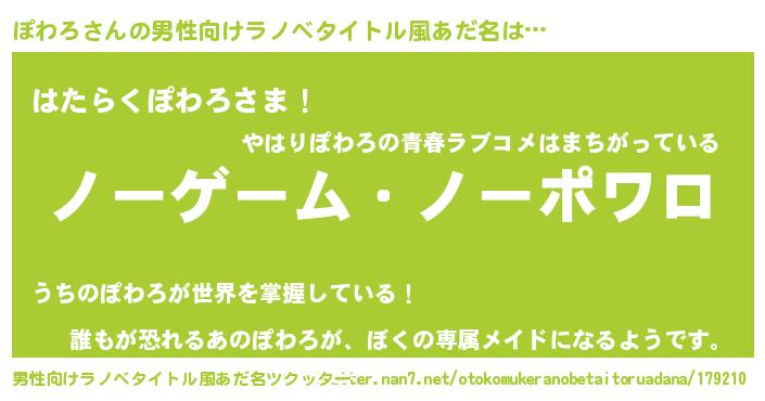 | ヒーロー風カッコイイあだ名 | 『慈愛の使者ぽわろ』『ネオポワロ』 |