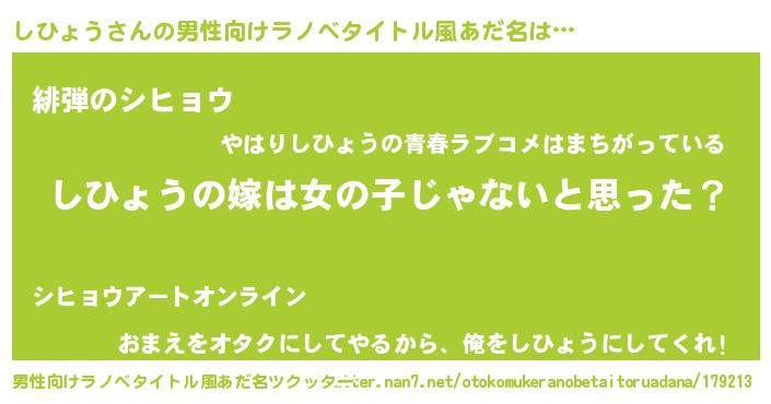 | 女子向けラノベタイトル風あだ名 | 『しひょう様がみてる』 |