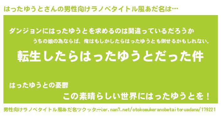 はったゆうとさんの男性向けラノベタイトル風あだ名をツクッター!