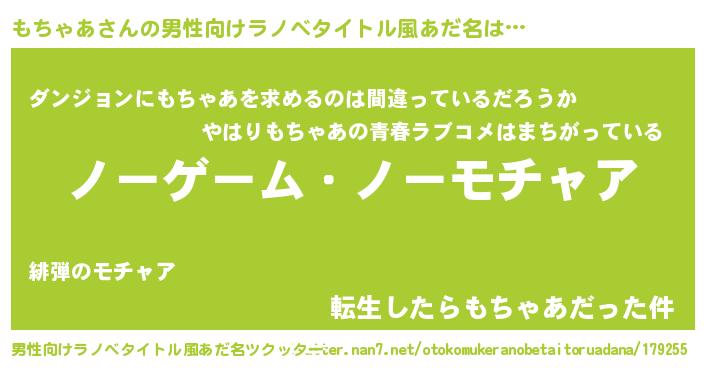 | ヒーロー風カッコイイあだ名 | 『天空の使者もちゃあ』『暗黒騎士モチ』 |