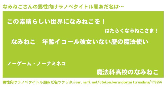 | 女子向けラノベタイトル風あだ名 | 『なみねこの玉の輿計画!』 |