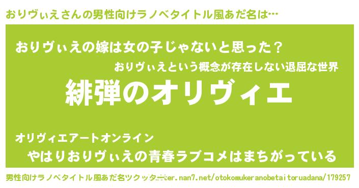 | 女子向けラノベタイトル風あだ名 | 『シンデレラおりヴぃえ家の靴箱館』 |