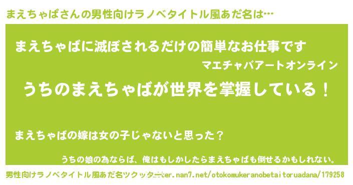 | 胡散臭い通販商品みたいなあだ名 | 『運命の人と巡り会える高級そうな壺…その名も「まえちゃば」』 |
