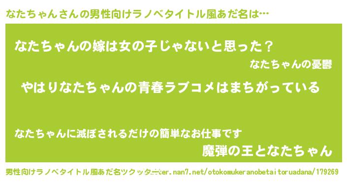 | 女子向けラノベタイトル風あだ名 | 『なたちゃん伯爵の花嫁』 |